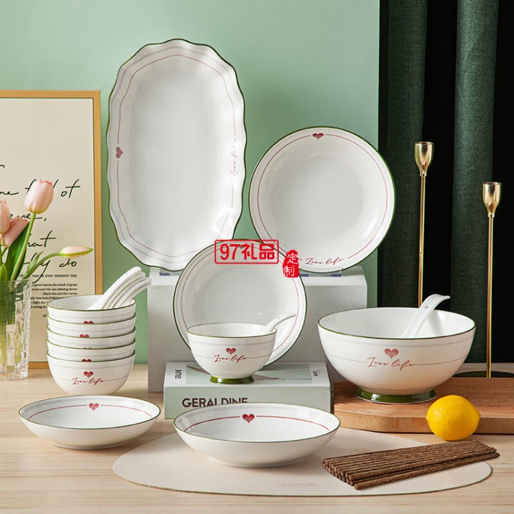 豪愛佳高溫釉下彩餐具套裝心心相印29件套