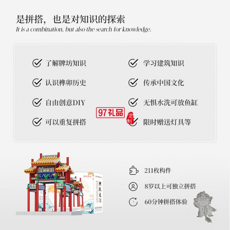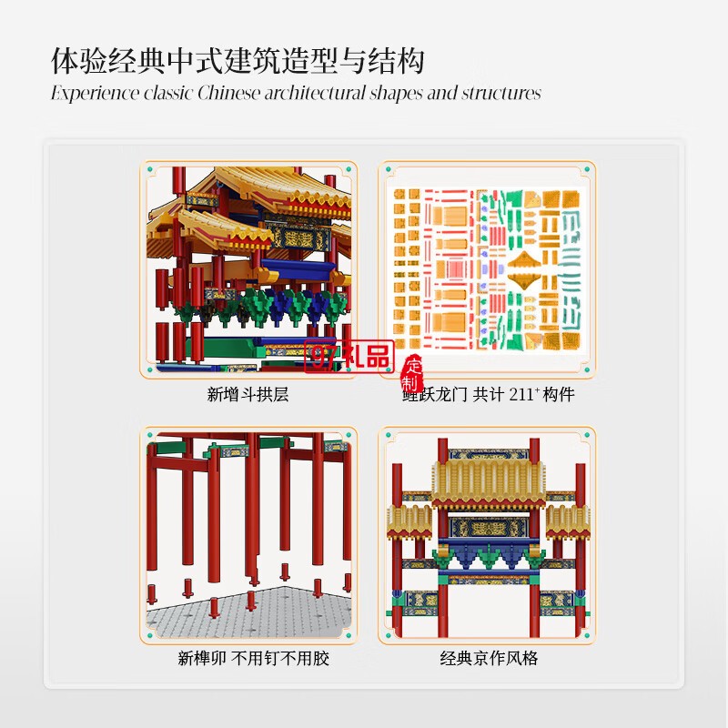 魚(yú)躍龍門(mén)牌坊故宮榫卯積木玩具中國(guó)風(fēng)古建筑潮玩禮物拼裝模型diy